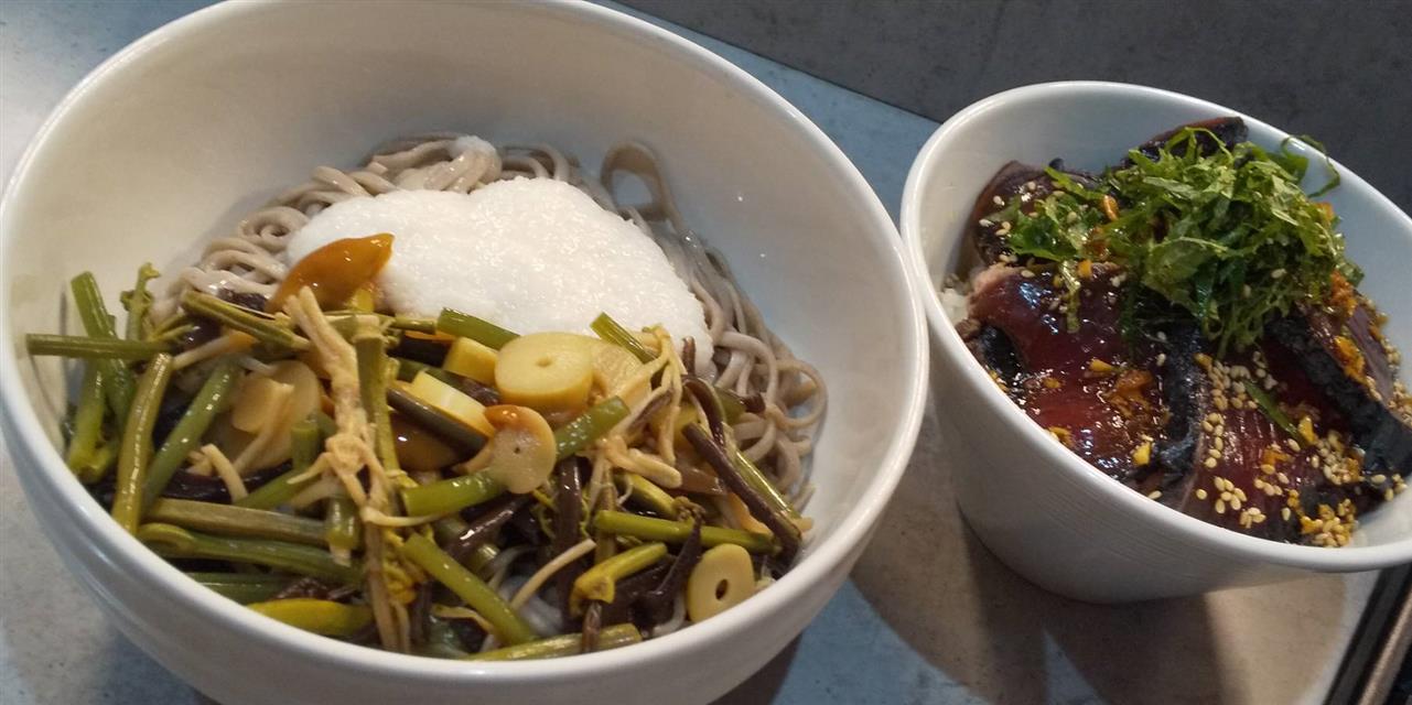 おはこんばんにちは(●´ω`●)どーも1回書いたのにデータが消えたひろぽんです。連休はどうでしたか?なかなか暑いですが休日の時には耐えれるんですが、仕事になると耐えれなくなりますよね笑そんな。26日のランチは、山菜とろろ蕎麦 & かつおの漬け丼なかなかにウマイ!!見た目通りに食べやすさはありますが、かつおの漬け丼は味を濃いめにしてガッツリ感も出しておりますがなによりもかつお、生姜、ごはん、そば、山菜、とろろと身体に美味しい素材で仕上げてありますので、心・体・おくちにも優しく仕上げております(●´ω`●)夏の疲れに悩んでいる方こそ!!☆近鉄四日市市駅から徒歩3分☆熊野地鶏も使った 『とり料理』☆二階テーブル席、最大12名☆おひとり様、大歓迎!!☆コース内容の相談歓迎!!≪鶏’sすたいる≫へ(´◉◞౪◟◉)ウホ!~・~・~・~・~・~・~・~・~・~【住所】三重県四日市市諏訪栄町11-5【TEL】059-351-4554【営業時間】ランチ:11:30~14:00 よ る:17:00~24:00 日曜日:11:00~22:00(LO21:00)