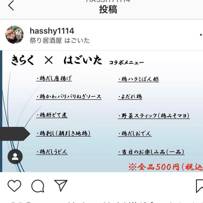 おはこんばんにちは。三重県四日市市の健康な鶏を使ったとり焼肉も美味しい!居酒屋さん。鶏焼肉と鶏料理鶏'sすたいる(ケーズスタイル)のゴリラこと、ひろぽん。でふ。先輩方の祭り居酒屋 はごいた さん下町酒場 きらく さん主宰でイベントさせていただきます。週明けの月曜日19:00からオープンです!ドリンク、フード共に500円!ワンコインでの提供させていただきます😊#四日市グルメ #四日市居酒屋#四日市ディナー #四日市焼肉#四日市鶏焼肉 #焼肉 #鶏焼肉#角ハイボール #ハイボール#レモンサワー #こだわり酒場#同窓会 #宴会 #新年会#貸切 #貸し切り #四日市飲み#はまぐりチャプター#はごいた #きらくhttps://lin.ee/bsfvGAU